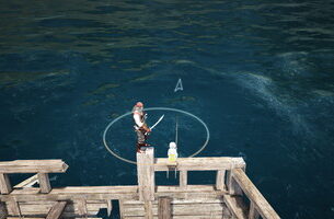 アンカト内港のギルド船着場管理のジェレミがいるところの先端で釣ってみました。