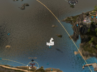 ベリア沖のヒラメポイント。自動移動でヒラメにセットして指し示される場所です。