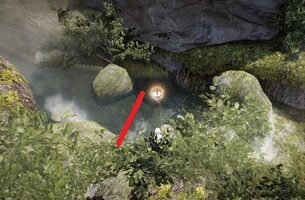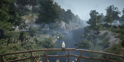 山塞間道のバレノス川に架かる橋の上、その手すりの上より釣りをしてみました。