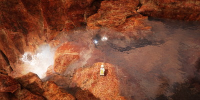 バルハンキャンプの拠点の東に流れている川。拠点から崖を降りて、小さい滝みたいになっているところのやや上流で釣ってみました。