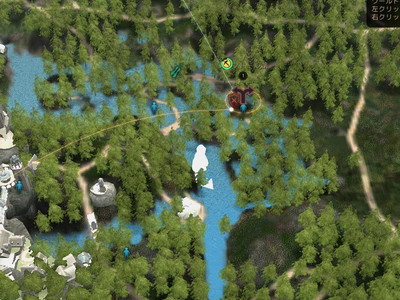 グラナ側から来て坂を下りてすぐのとこ。ラッコ族と住民がいるのでその横で釣りました。