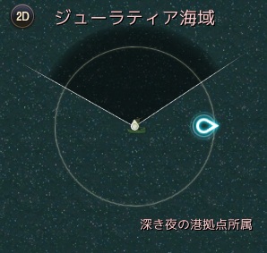 深き夜の港から西に行った海域。おおよそ深き夜の港のチンクルから真西に900くらいの距離です。