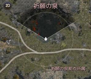 MAP上での祈願の泉と風羽根の峰の丁度中間辺りにある池。場所表記的には祈願の泉となるようです。池の南側で釣ってみました。