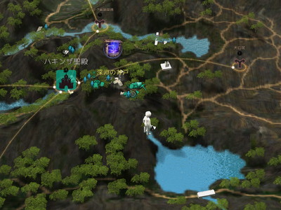 ハキンザ聖殿南東の山を越えた先にある沈黙の湖。山側に滝があり、山の中の水路から水が流れ出て来ているので、その最上段で釣ってみました。