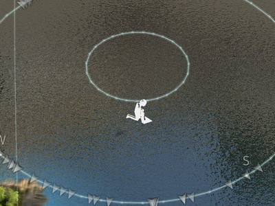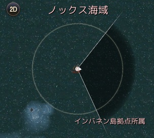 レマ島北東の海域。目印は小MAP。レマ島北東の浅瀬が小MAPの左下に見える位置。