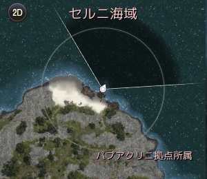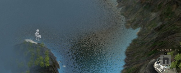アーチェル西部キャンプ西の名もなき島の北側桟橋にて。泳いで・・・行った気がします。マネしないでください。でも船だと遠いんですよねー・・・。