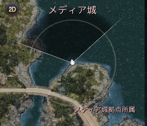 メディア城の拠点管理人アルラバ・メソから北東の海側に降りたとこ。一度降りたら登れなくて、緊急脱出で戻った気がする。