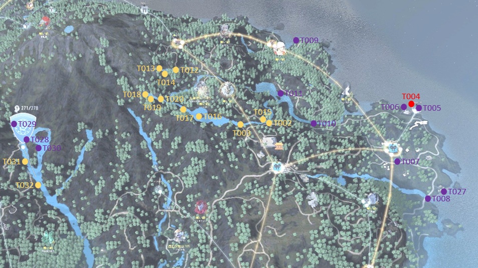 | T001_ダミ渡し場1 | T002_タルボル村1 | T003_タルボル村2 |
